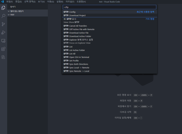 다시 "F1"을 눌러 "sftp:Download Project"을 선택하여 프로젝트 다운로드하기