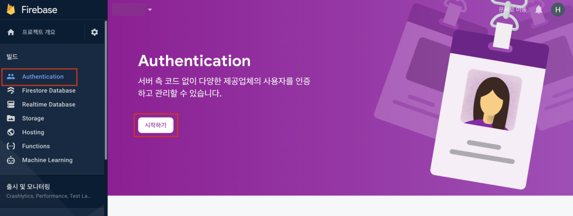 먼저, 파이어베이스를 생성 및 설정으로 들어가서 `Authentication`을 설정해줘야 합니다.