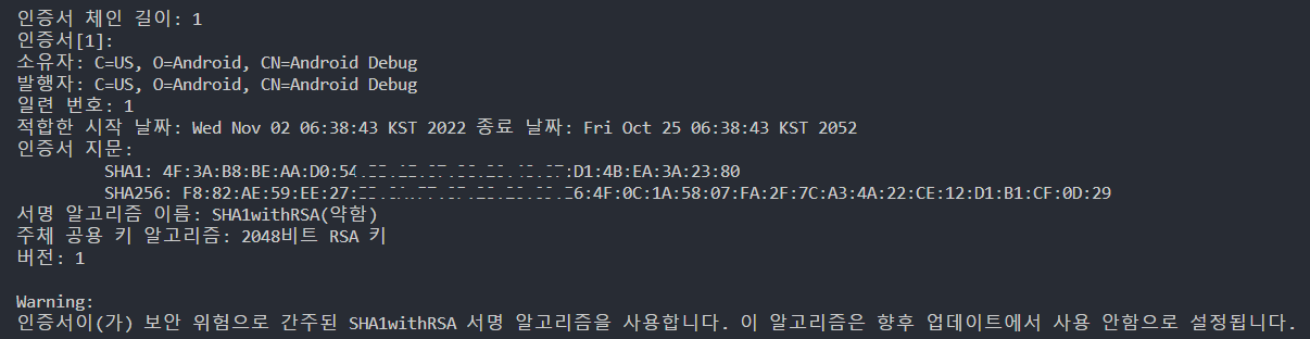 디버그 키 인증서