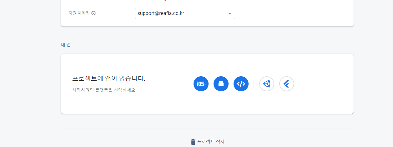프로젝트 이름과 지원 이메일을 선택하여 저장