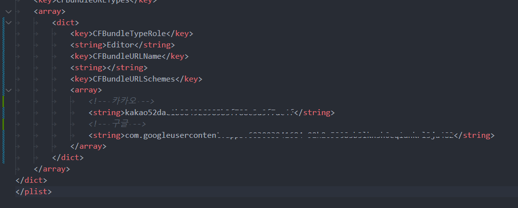 `Info.plist`에서 위 코드를 추가하면 되며, 카카오는 예시입니다.