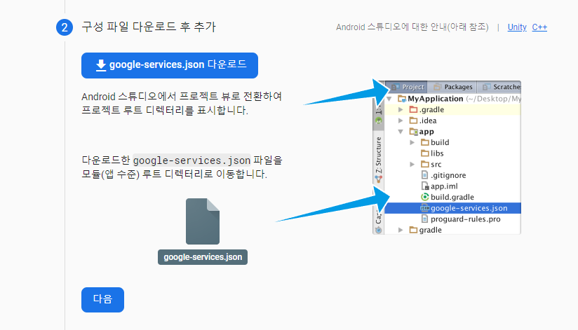 `google-services.json` 파일을 `android/app` 폴더에 넣기