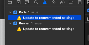 Xcode에서 프로젝트 항상 경고 문구가 뜨는데 바로 Update to recommended settings라고 뜹니다. 이 경고를 끄기 위해서는 Podfile에 코드 한 줄을 넣어주면 무시할 수 있습니다.