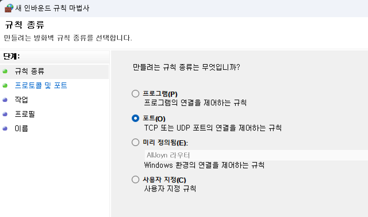 새 규칙을 만들어 허용할 포트를 추가해주시면 됩니다.
