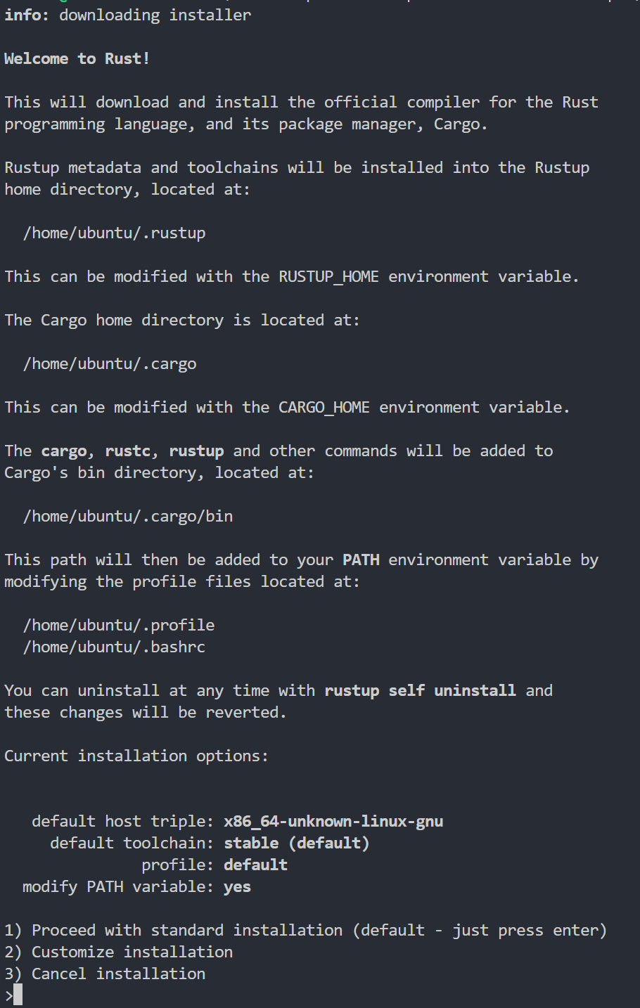 curl --proto '=https' --tlsv1.2 -sSf https://sh.rustup.rs | sh